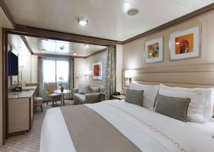 | R1 - Royal Suite 1 92 m² (vrátane balkóna 12 m²), Spálňa s obývacou a jedálenskou časťou. 7. paluba vpredu. Max 3 osoby. | 36 600 € 18 300 € za osobu | ||