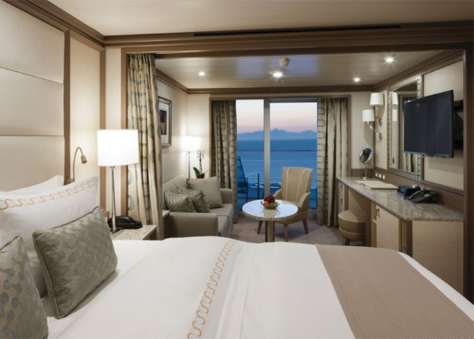 | SV - Superior Veranda Suite 29 m² + balkón 6 m². Spálňa s oddeliteľnou obývacou časťou. 7,8,9. vpredu. Max 3 osoby. | 19 800 € 19 800 € za osobu | ||